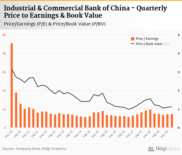 Industrial & Commercial Bank of China stock traded at HKD 6.70 per share at the end second quarter of 2019 implying a market capitalization of USD 305,560 mil.