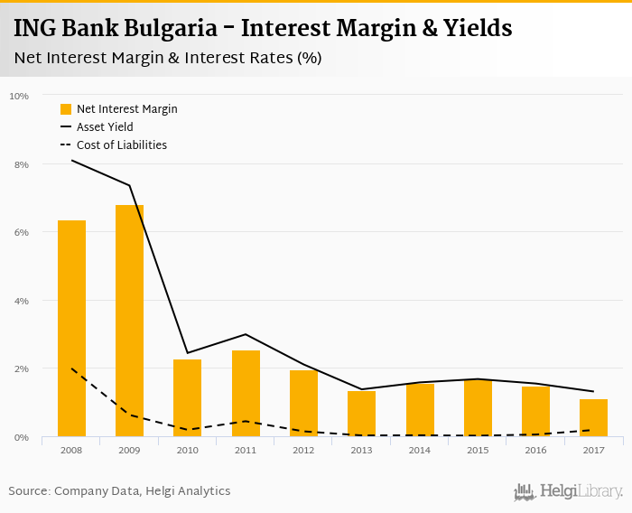 Comparing ING Bank Bulgaria with its closest peers, DSK Bank operated in 2017 with a net interest margin of 3.91% in 2017, United Bulgarian Bank reached 3.16% and Raiffeisenbank Bulgaria some 3.00%.