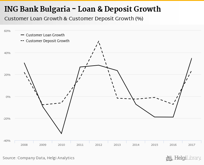 At the end of 2017, ING Bank Bulgaria's loans accounted for 51.8% of total deposits and 51.5% of total assets.