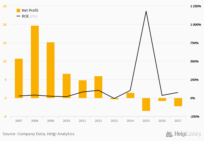 ING Bank Bulgaria made a net profit of BGN -2.26 mil in 2017, down 187% compared to the previous year. This implies a return on equity of 72.5%.