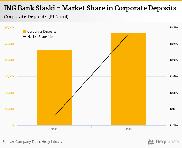 ING Bank Slaski's corporate deposits reached PLN 84,739 mil in 2022, up 22.6% compared to the previous year.