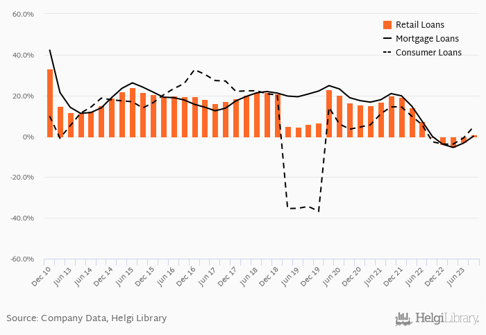 Overall, retail loans accounted for 40.9% of the bank's loan book at the end of 2023-09-30.