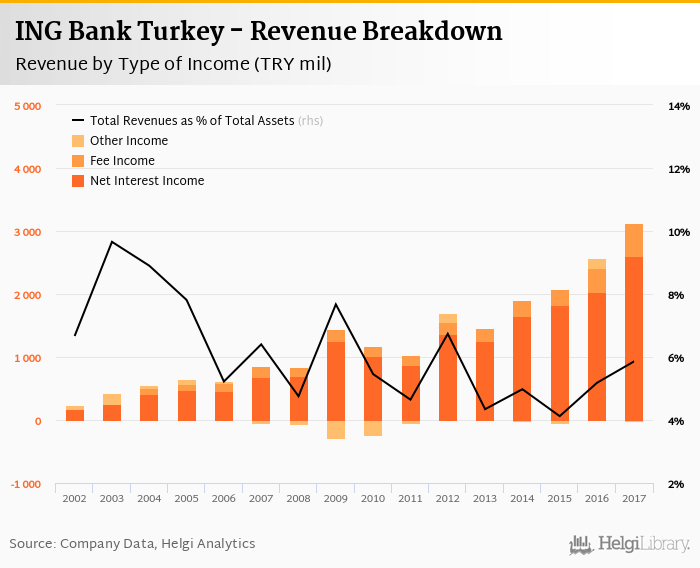 ING Bank Turkey generated total banking revenues of TRY 3,110 mil in 2017, up 20.8% compared to the previous year.