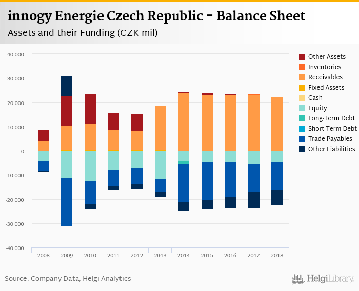 innogy Energie Czech Republic's total assets reached CZK 22,298 mil at the end of 2018, down 5.26% compared to the previous year.