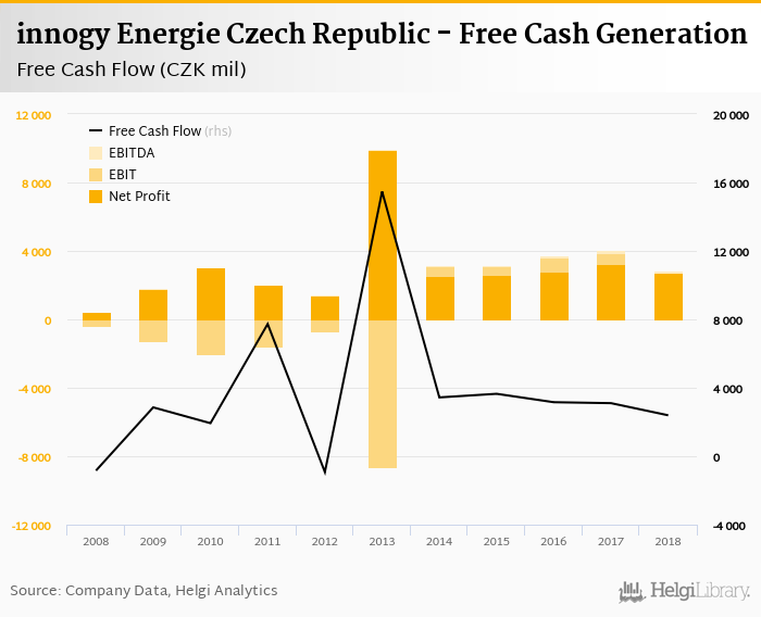 innogy Energie Czech Republic made a net profit of CZK 2,702 mil with revenues of CZK 31,682 mil in 2018, down by 16.7% and down by 1.77%, respectively, compared to the previous year. This translates into a net margin of 8.53%.