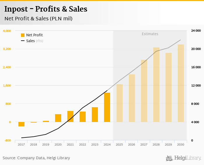 Inpost made a net profit of PLN 1,285 mil in 2024, up 98.4% compared to the previous year. Total sales reached PLN 10,837 mil, which is up 22.5% when compared to the previous year.