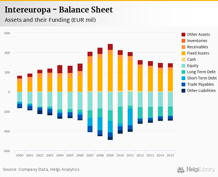 Intereuropa's total assets reached EUR 292 mil at the end of 2015, down 0.957% compared to the previous year.