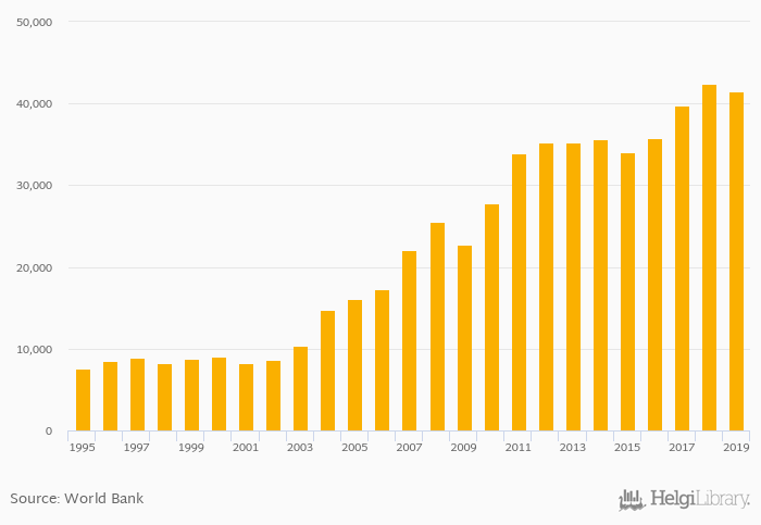 | Australia | USD mil | 35,666 | 34,071 | 35,718 | 39,710 | 42,439 | ||||||||||||||||