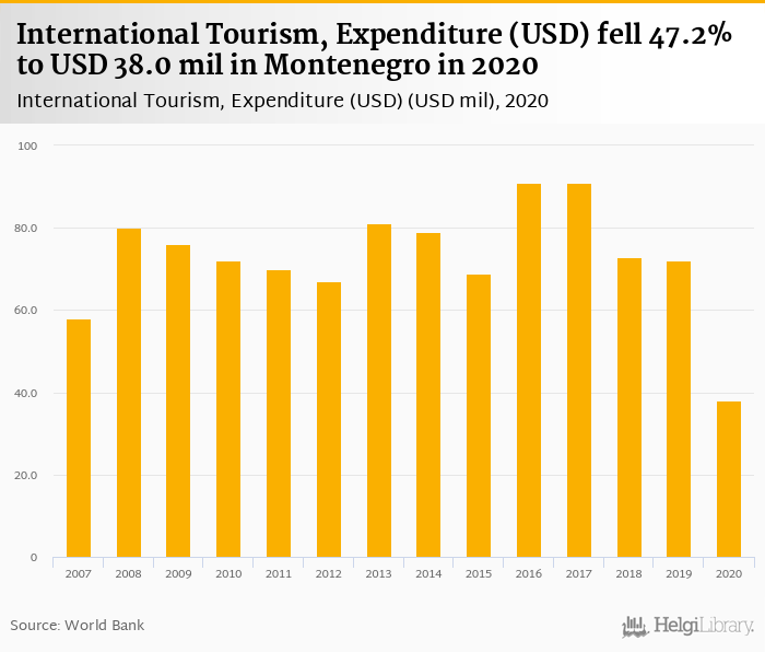 International Tourism, Expenditure (USD) fell 47.2% to USD 38.0 mil in Montenegro in 2020