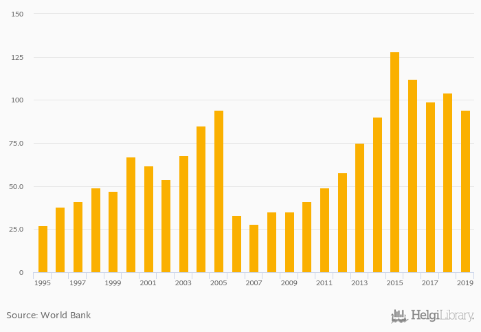 | Suriname | USD mil | 90.0 | 128 | 112 | 99.0 | 104 | ||||||||||||||||