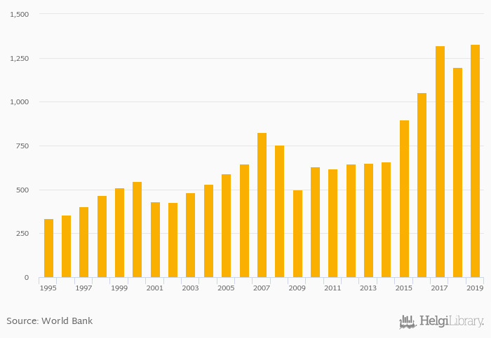 | Mexico | USD mil | 12,556 | 12,668 | 12,823 | 13,647 | 14,074 | ||||||||||||||||