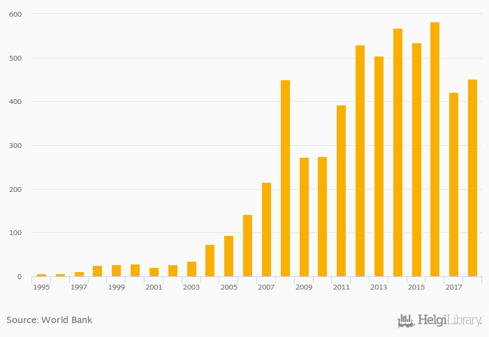 | Kyrgyzstan | USD mil | 568 | 535 | 582 | 422 | 451 | ||||||||||||||||