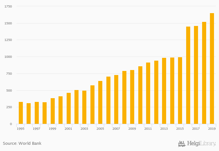 | Chile | USD mil | 2,707 | 2,518 | 2,733 | 3,093 | 3,124 | ||||||||||||||||