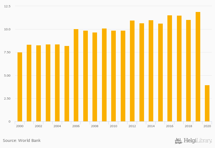 Historically, number of international tourist departures in Austria reached an all time high of 11.9 mil in 2019 and an all time low of 3.96 mil in 2020.