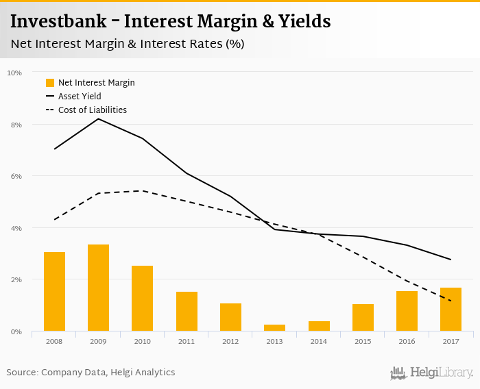 Investbank's net interest margin amounted to 1.70% in 2017, up from 1.56% compared to the previous year.
