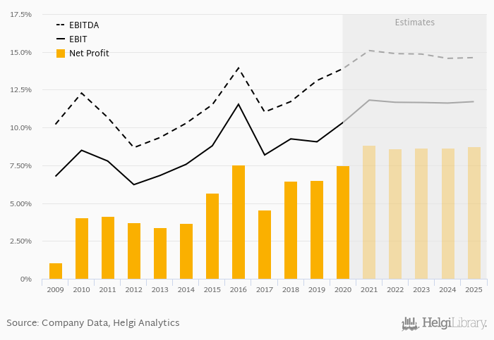 On the operating level, the EBITDA margin reached 13.9% and EBIT amounted to 10.3% of sales in 2020.