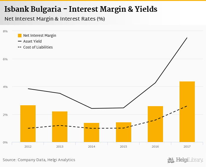 Isbank Bulgaria's net interest margin amounted to 4.38% in 2017, up from 2.60% compared to the previous year.