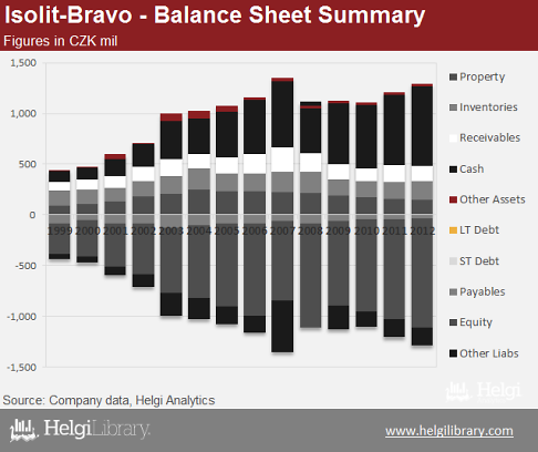 Although sales have halved in 2012 compared to its peak year of 2007 when they reached nearly CZK 1.5 bil, the Company remains nicely profitable (with a net margin of over 14% in 2012) and cash rich (net cash accounted for 73% of Company's equity at the end of 2012).