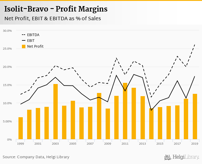 Isolit-Bravo made a net profit of CZK 106 mil with revenues of CZK 846 mil in 2019, up by 2.22% and down by 8.80%, respectively, compared to the previous year.