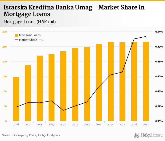 Istarska Kreditna Banka Umag's mortgage loans reached HRK 267 mil in 2017, up 0.819% compared to the previous year.