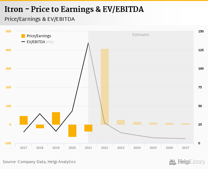 Itron stock traded at USD 66.0 per share at the end 2021 translating into a market capitalization of USD 2,924 mil.