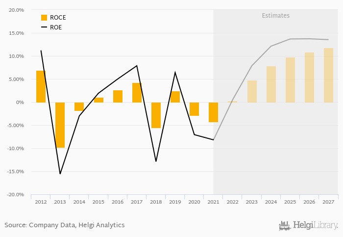 The result implies a return on equity of -8.20% and a return on invested capital of -4.23% in 2021. That is compared to an average of -2.78% and -1.20% over the last five years.