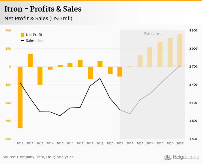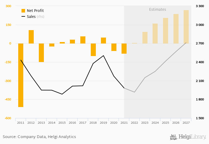 Historically, between 2011 and 2021, the company’s net profit reached a high of USD 108 mil in 2012 and a low of USD -510 mil in 2011. Over the last decade the firm's net profit decreased by an average of 16.8% a year.