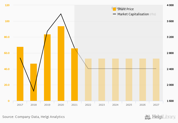Since the end of 2016, stock has appreciated by % implying an annual average growth of % In absolute terms, the value of the company rose by USD 2,924 mil.