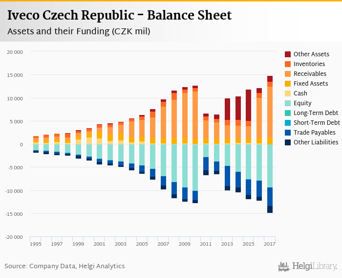 Iveco Czech Republic's total assets reached CZK 14,845 mil at the end of 2017, up 21.5% compared to the previous year.