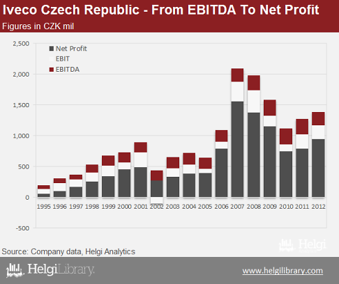 The Company doubled its sales in the last decade, to nearly CZK 9.5 bil in 2012. It operates with an impressive net margin of 10% and virtually without any debt