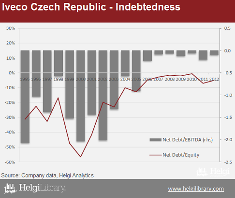 The Company doubled its sales in the last decade, to nearly CZK 9.5 bil in 2012. It operates with an impressive net margin of 10% and virtually without any debt
