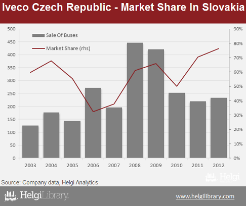 In 2012, the Company produced 2,773 buses in the Czech Republic, nearly twice as many as a decade ago. About 95% of the production is exported mostly to France.