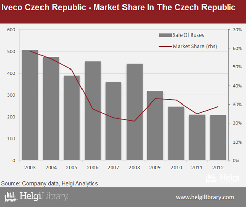 In 2012, the Company produced 2,773 buses in the Czech Republic, nearly twice as many as a decade ago. About 95% of the production is exported mostly to France.