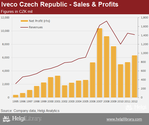 The Company doubled its sales in the last decade, to nearly CZK 9.5 bil in 2012. It operates with an impressive net margin of 10% and virtually without any debt