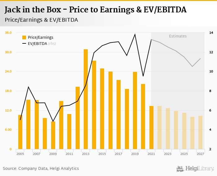 Jack in the Box stock traded at USD 98.4 per share at the end 2021 translating into a market capitalization of USD 2,091 mil.