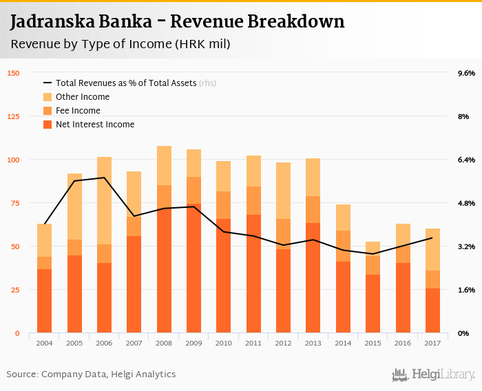 Jadranska Banka generated total banking revenues of HRK 60.4 mil in 2017, down 4.24% compared to the previous year.