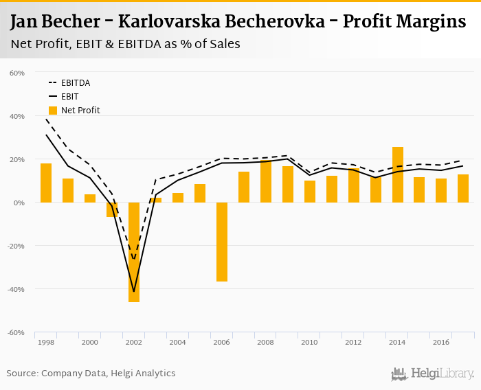 Jan Becher - Karlovarska Becherovka made a net profit of CZK 157 mil with revenues of CZK 1,209 mil in 2017, up by 11.4% and down by 4.47%, respectively, compared to the previous year.