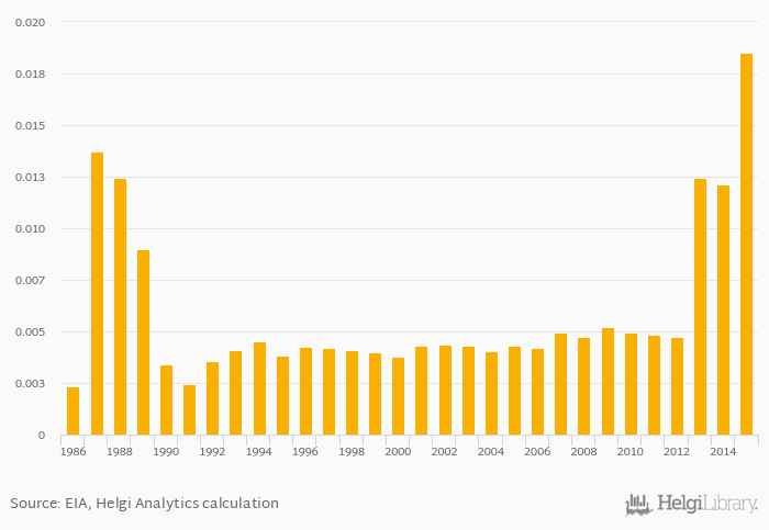 Jet fuel consumption as a share of worldwide consumption rose 52.3% to 0.018% in Guinea in 2015, according to EIA.