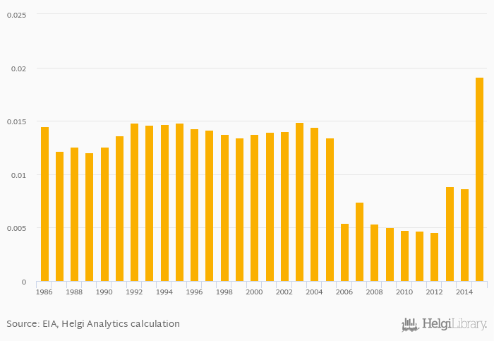 Jet fuel consumption as a share of worldwide consumption rose 120% to 0.019% in Niger in 2015, according to EIA.