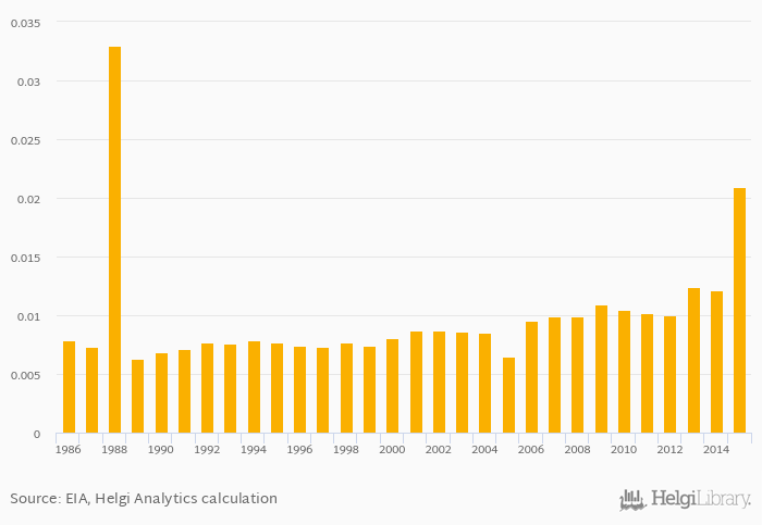 Jet fuel consumption as a share of worldwide consumption rose 72.6% to 0.021% in Rwanda in 2015, according to EIA.