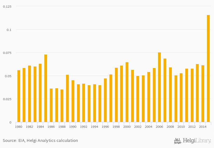 Jet fuel consumption as a share of worldwide consumption rose 88.4% to 0.116% in Iceland in 2015, according to EIA.