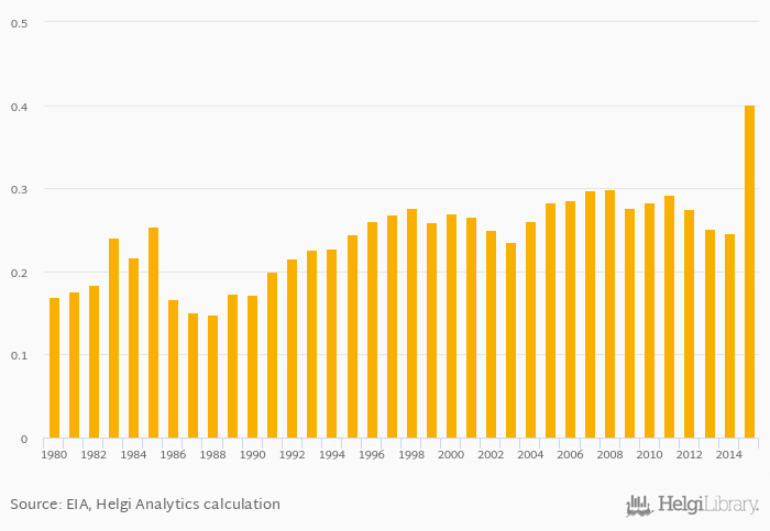 Jet fuel consumption as a share of worldwide consumption rose 63.4% to 0.401% in Austria in 2015, according to EIA.