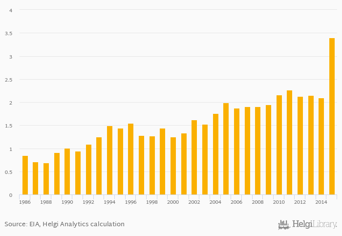 Historically, jet fuel consumption as a share of worldwide consumption in Hong Kong reached an all time high of 3.40% in 2015 and an all time low of 0.688% in 1988. When compared to Hong Kong's main peers, jet fuel consumption as a share of worldwide consumption in China amounted to 15.4%, 4.17% in Singapore, 1.62% in Taiwan and 0.602% in Vietnam in 2015.