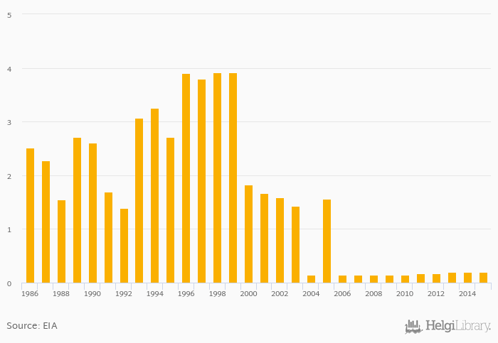 Jet fuel consumption fell 2.23% to 0.196 '000 bpd in Zimbabwe in 2015, according to EIA.