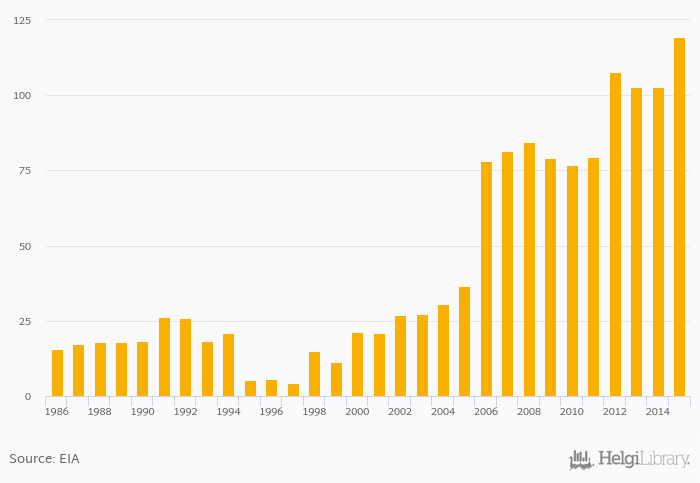 Jet fuel consumption rose 16.0% to 119 '000 bpd in United Arab Emirates in 2015, according to EIA.