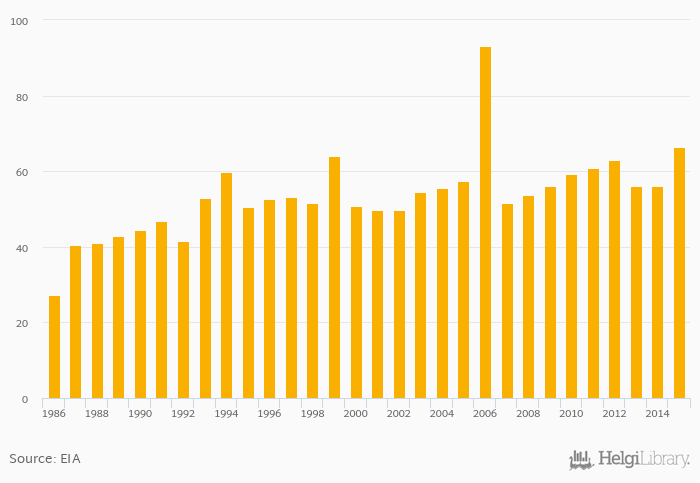 Jet fuel consumption rose 18.3% to 66.5 '000 bpd in Saudi Arabia in 2015, according to EIA.