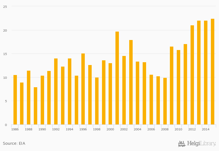 Jet fuel consumption rose 1.91% to 22.4 '000 bpd in Colombia in 2015, according to EIA.