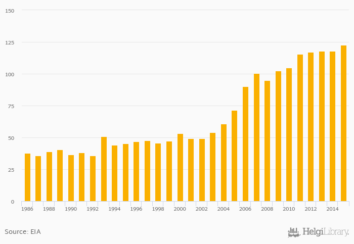 Jet fuel consumption rose 4.03% to 123 '000 bpd in India in 2015, according to EIA.