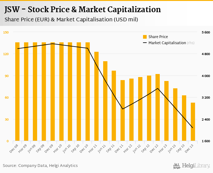JSW stock traded at EUR 53.1 per share at the end 4Q2013 implying a market capitalization of USD 2,070 mil.