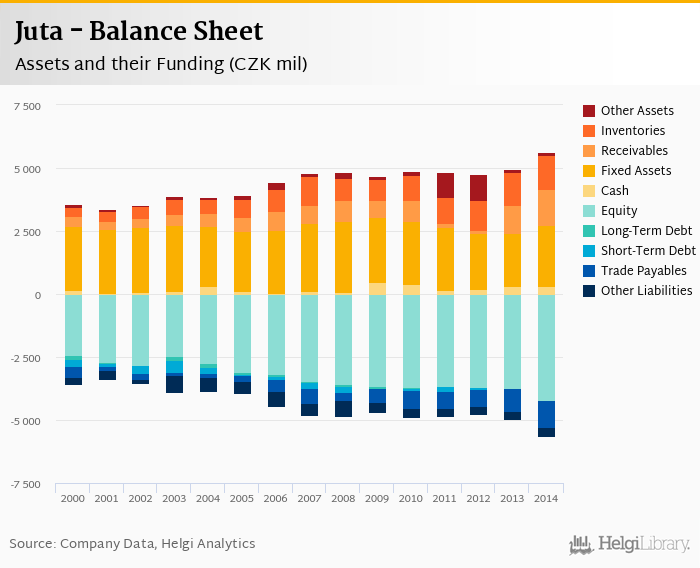 Juta's total assets reached CZK 5,641 mil at the end of 2014, up 13.8% compared to the previous year.